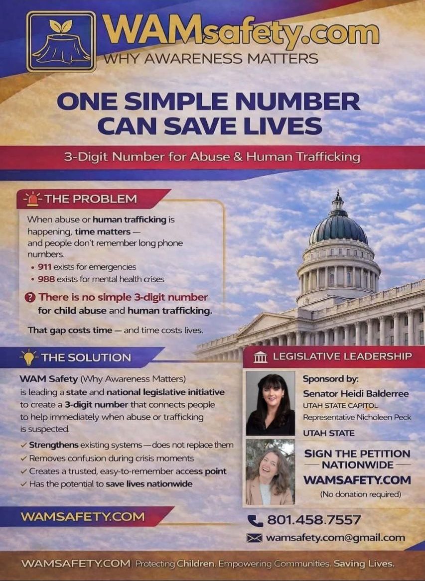 WAM Safety prevents abuse, trafficking, and exploitation through education, survivor support, and law reform. We advance public safety legislation, provide safe housing, legal advocacy, and survivor retreats, and educate schools and communities—working with partners to promote awareness, accountability, and healing.